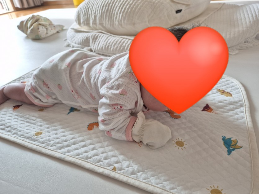 울 아가가 벌써 고개근육강화 운동하고있네요