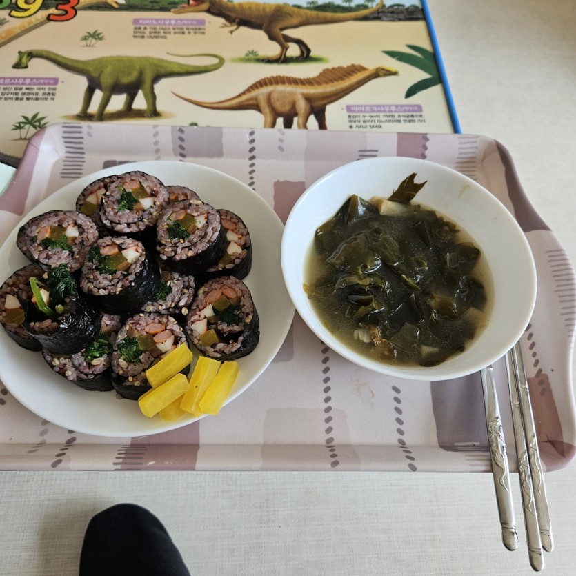 음식을 잘 안해먹어서 냉장고도 텅텅 비었었는데 집에 있는 재료로 맛있게 해주셨어요! 번거로우셨을텐데 제가 김밥을 너무 좋아해서 부탁드렸더니 김밥도싸주시고 떡만