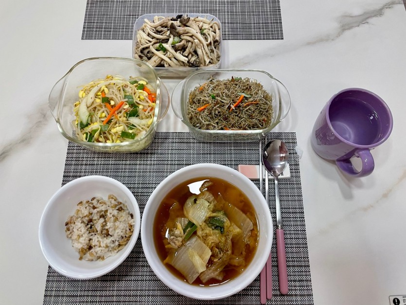 관리사님이 매일 반찬 서너가지와 국, 건강한 간식을 준비해주셔서