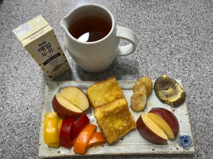 문제는....그다음날부터 지금까지 집에 빈손으로 오신적이 없으세요....너무 죄송하게도 집에서 저 먹을 간식까지 다 챙겨 오시고 제가 필요하신거 말씀해주시면 쿠팡으로 사면된다고 했는데 항상 집에서부터 뭘 사오셨어요ㅠㅠ(빵집에서 빵냄새가 좋아서, 홍시가 맛있어보여서, 고구마를 한박스 사서, 고등어를 사서, 좋은 무가 있어서, 파프리카가 색이 예뻐서 등등등....) 새롭고 맛있는 음식을 해주셨어요. 넘 맛있게 먹어버리는 바람에 첨부한 사진 몇장 없지만 사진에 나온 반찬 대부분 제가 사서 준비한거 아니고 관리사님이 그냥 다 사오셔서 차려주신 식단이에여..ㅠㅠ